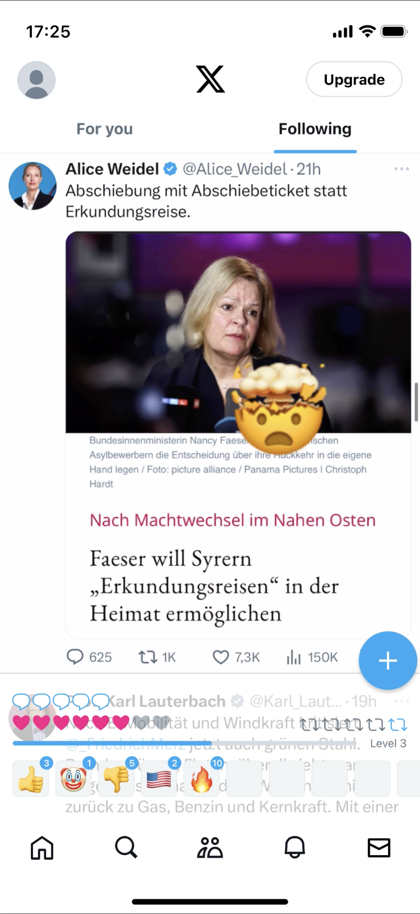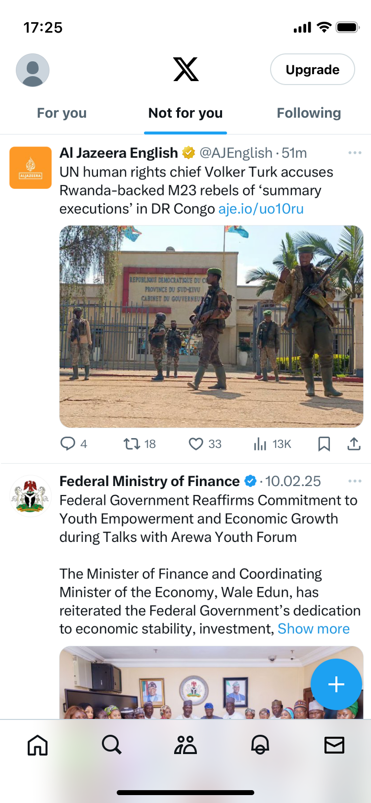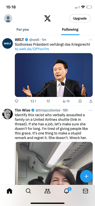 “For You” is displayed automatically when the app is opened. The name subtly implies that X exactly knows what is best for you. It displays a mixture of algorithmically suggested content and posts from accounts you follow, making it difficult to distinguish between the two.
